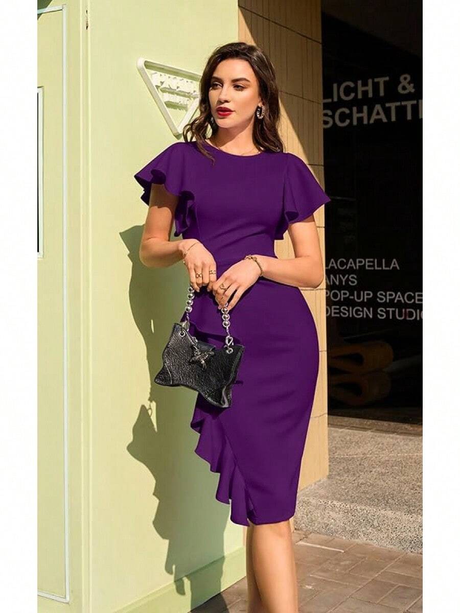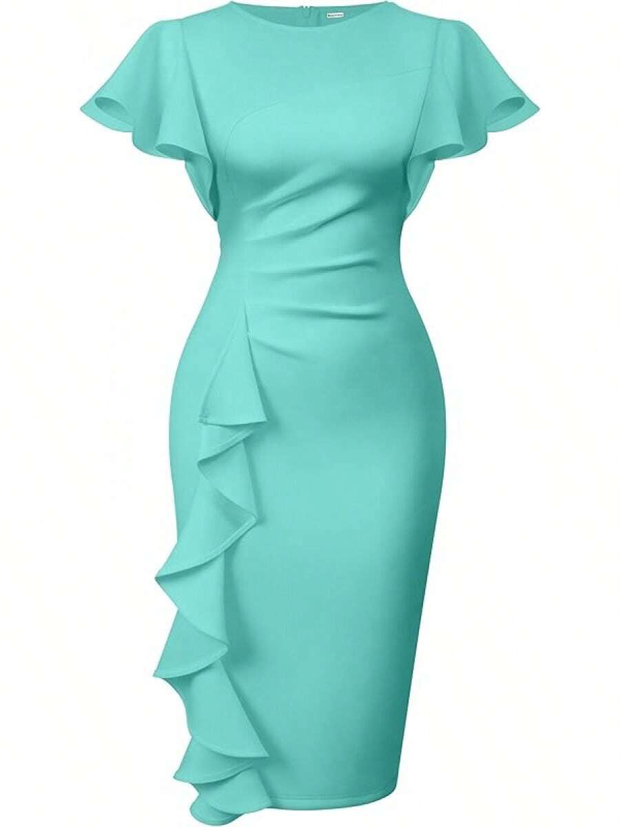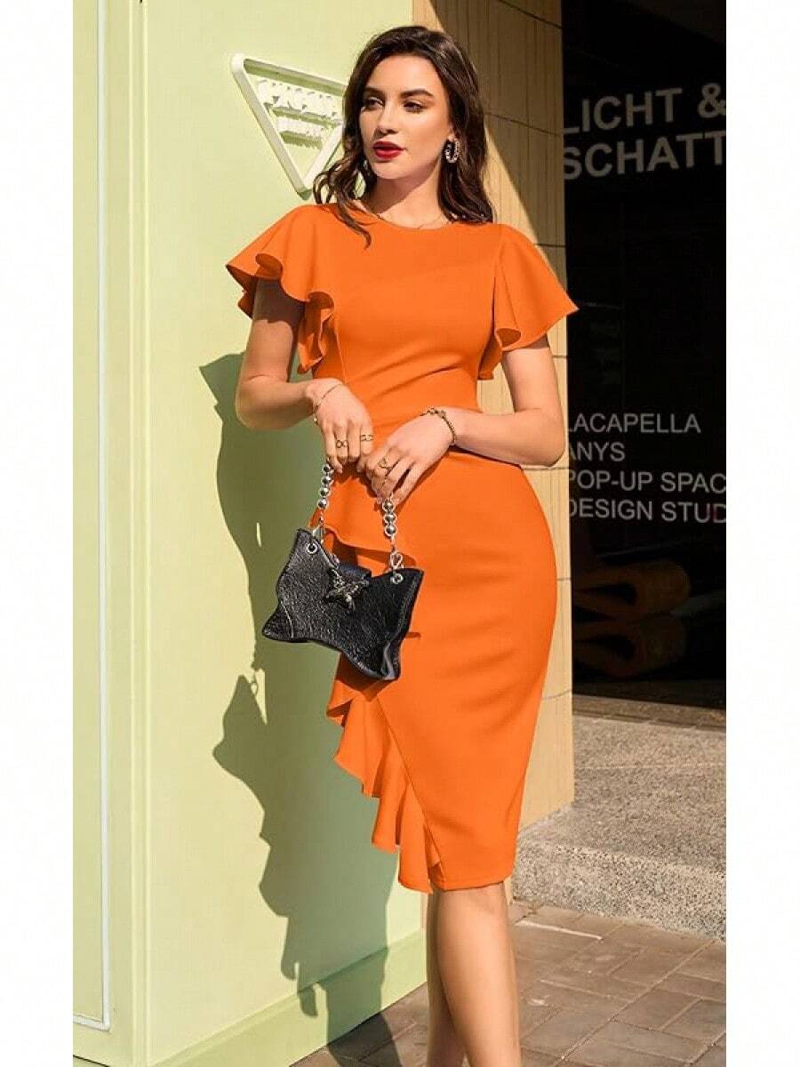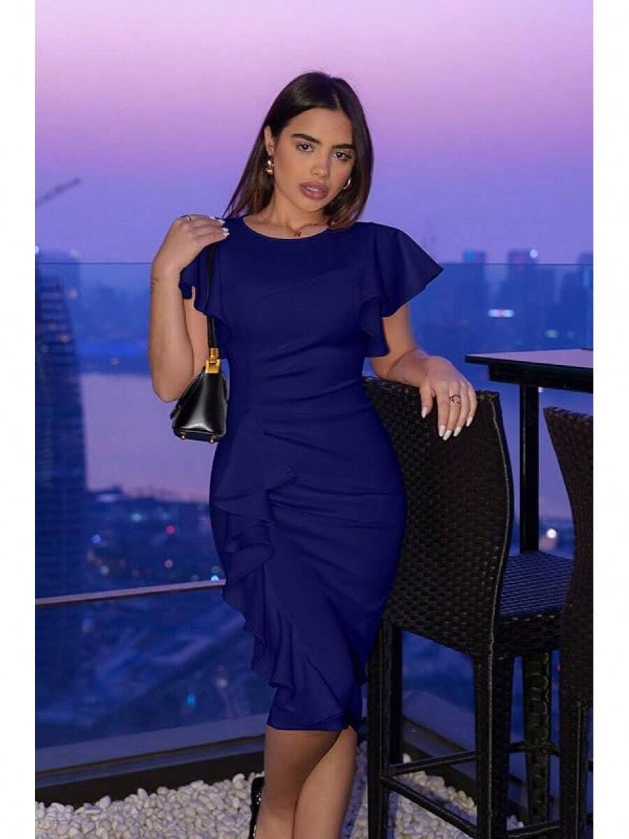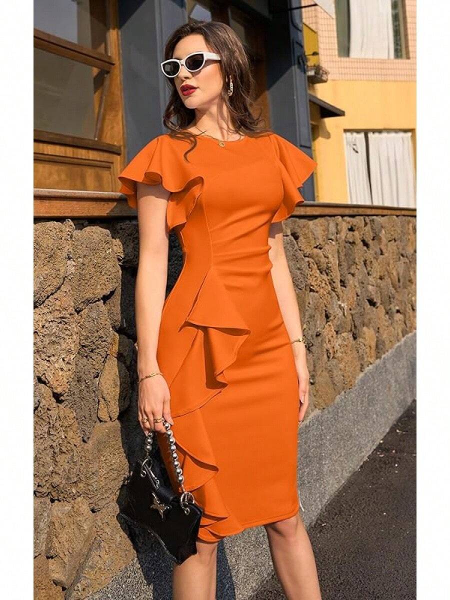 The Lillian dress is a refined statement — equal parts poised and powerful. With flutter sleeves, a sculpted bodycon silhouette, and cascading ruffle detail, this midi dress blends femininity with confidence. Whether you’re headed to a wedding, a work event, or a formal dinner, Lillian makes every entrance unforgettable.