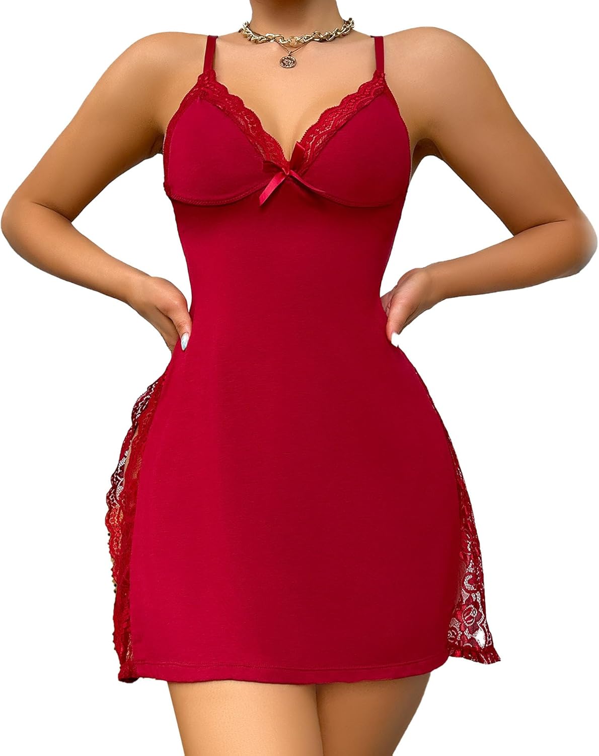 Avaska | Women’s Lace Trim Slit Sleep Dress