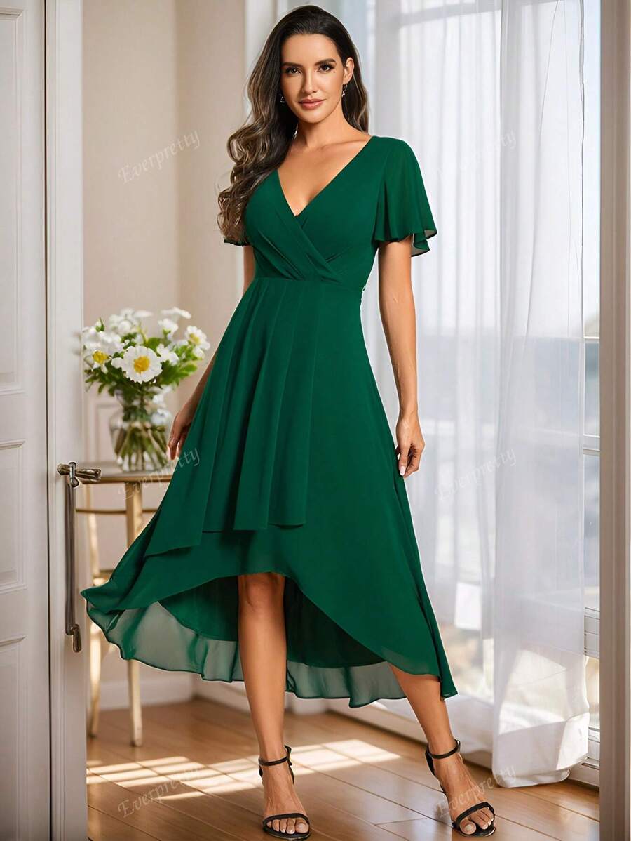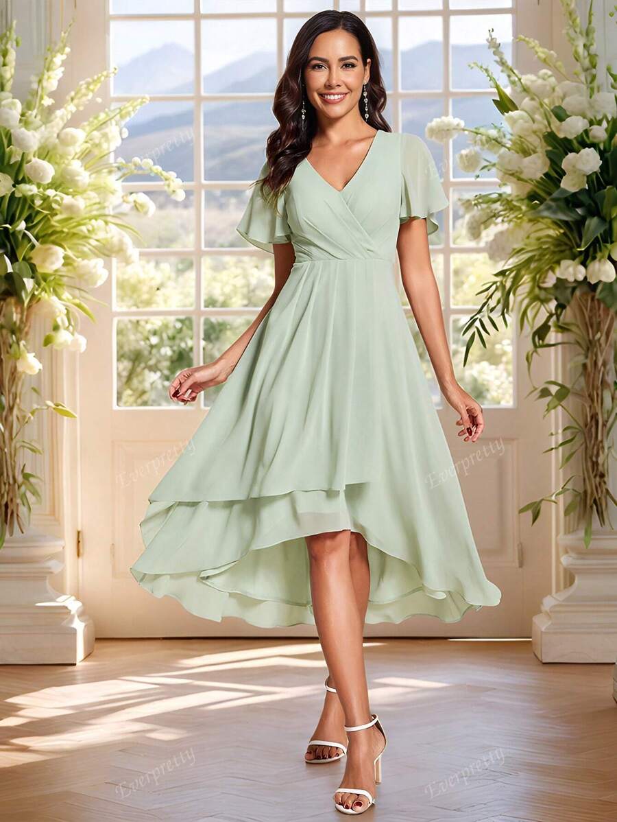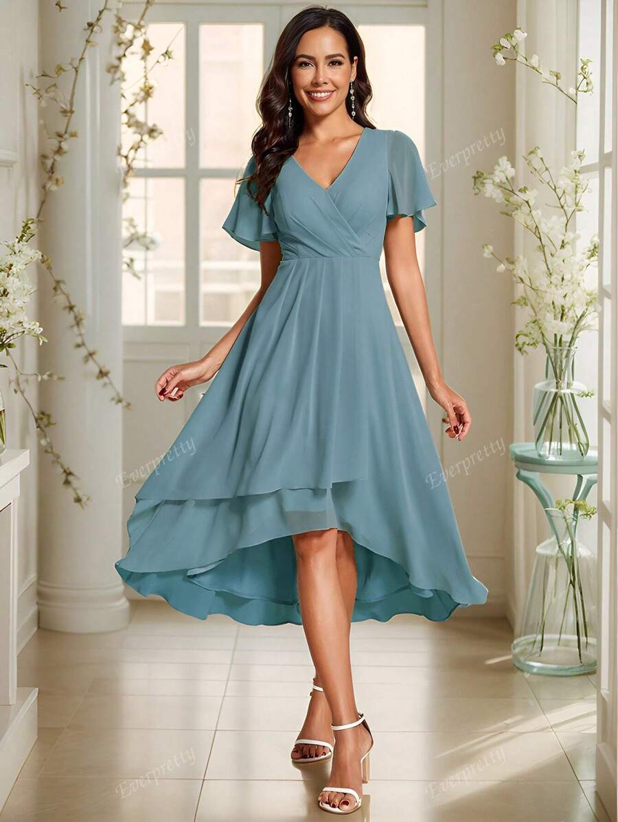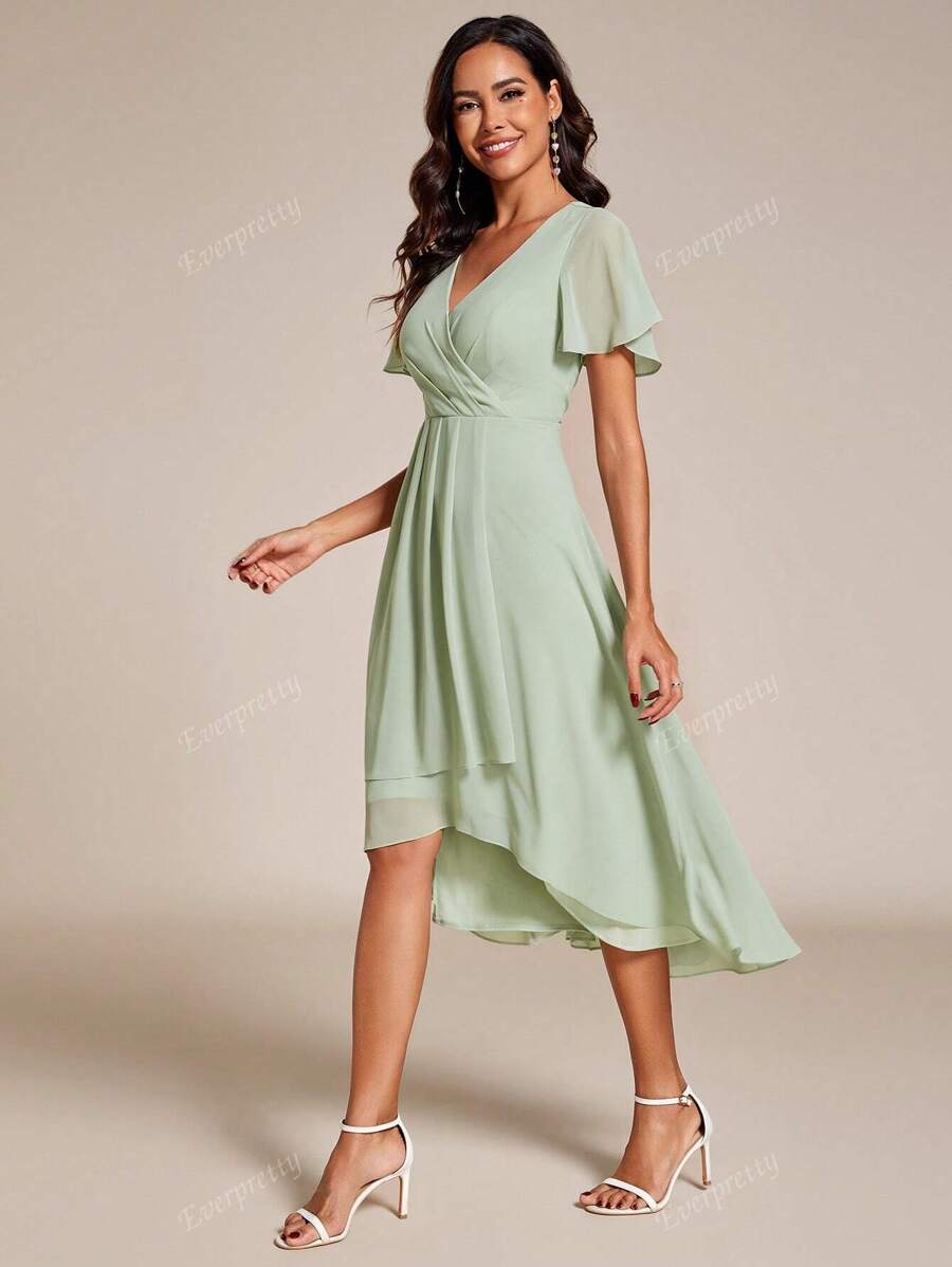 "Grace" Flutter Sleeve High-Low Dress