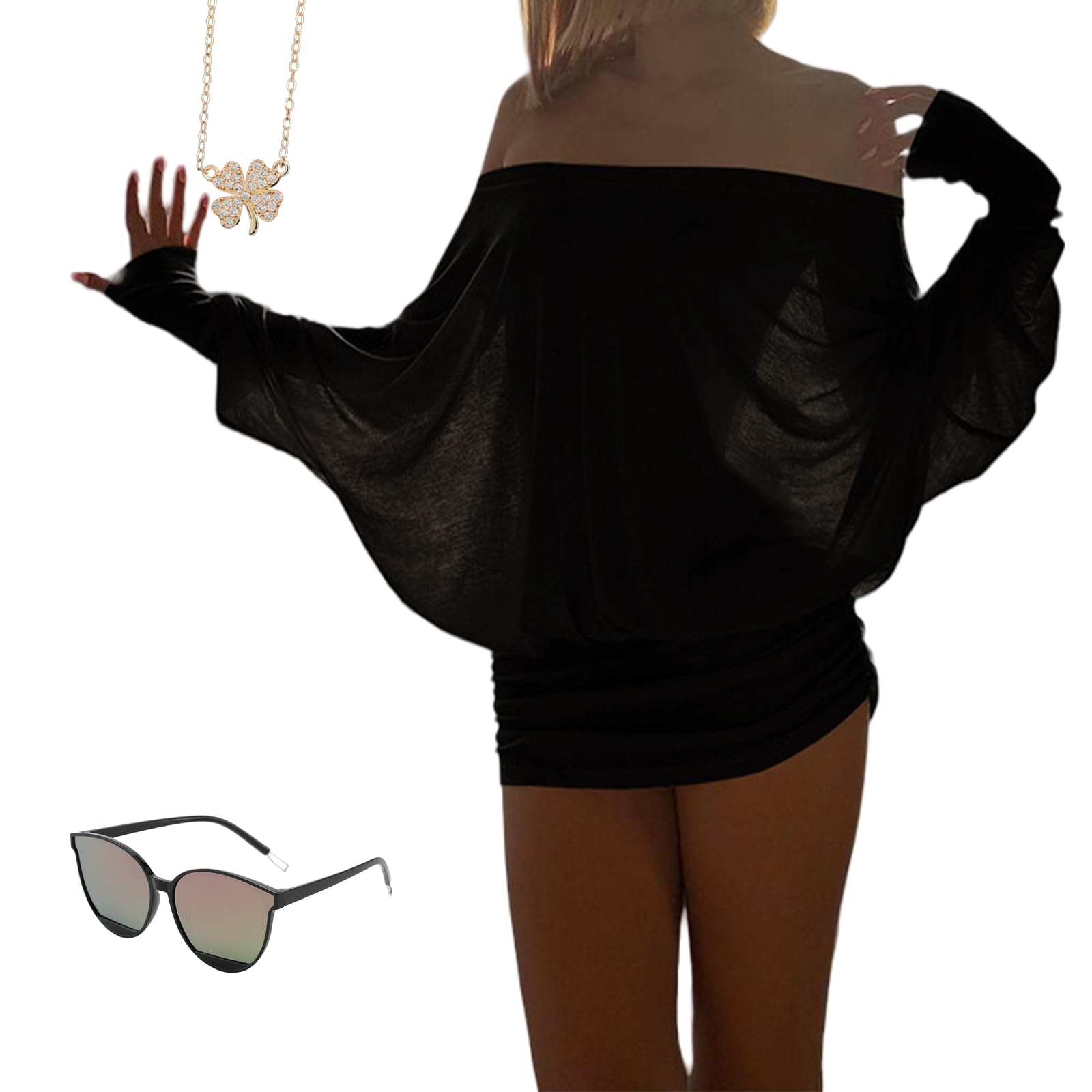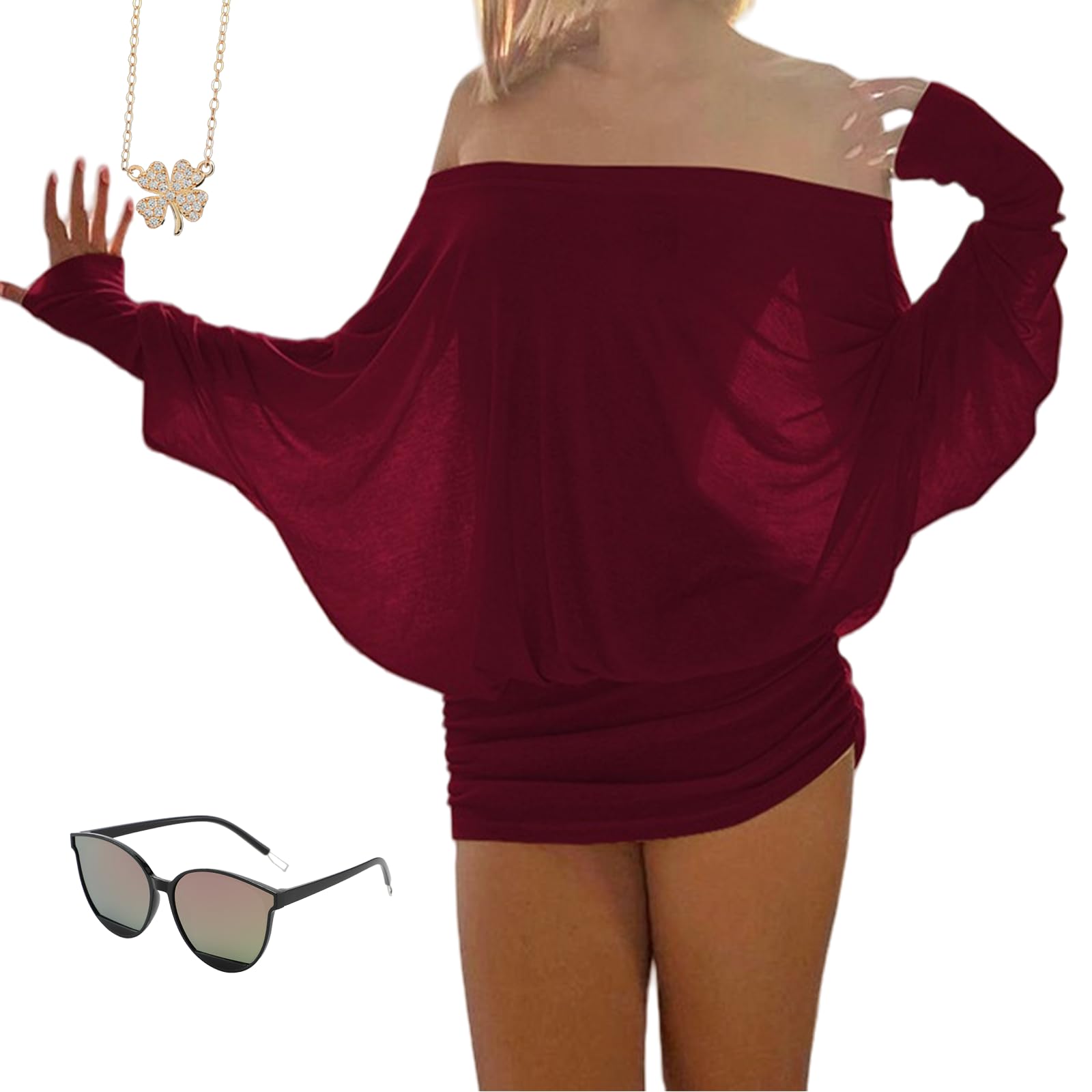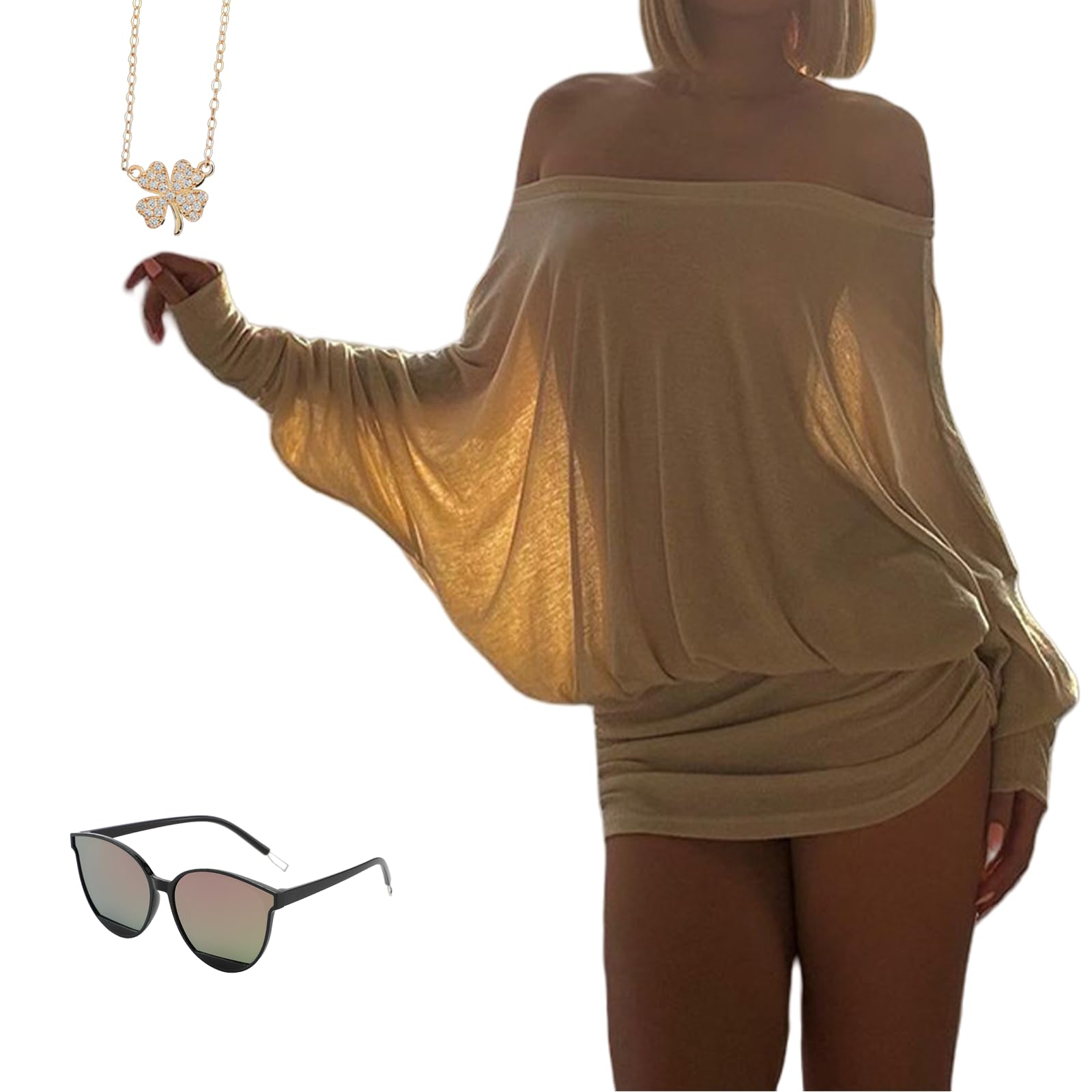 Lokora | Off-Shoulder Batwing Sleeve Long Dress
