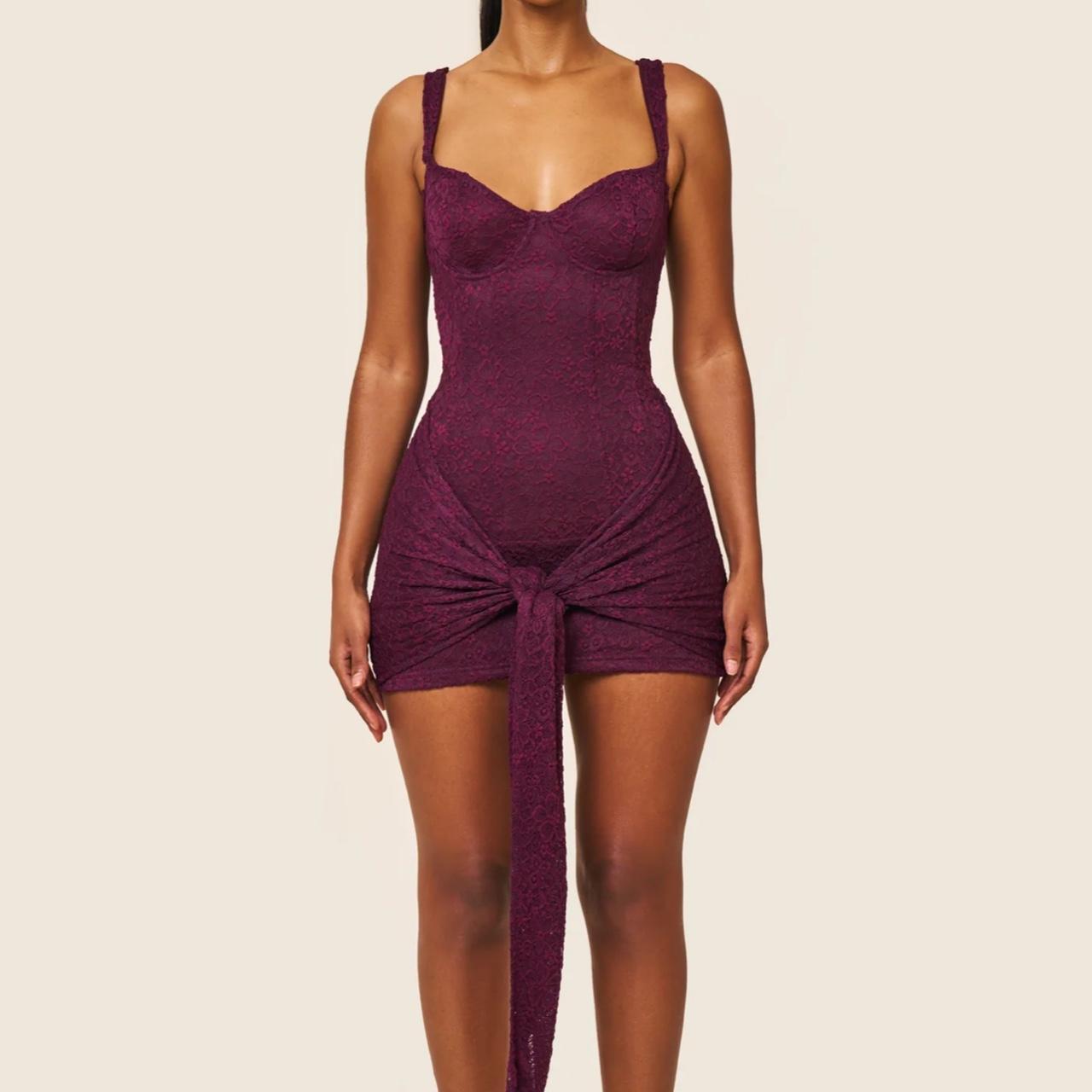 Luvoria | Corset Lace Mini Dress with Side Drape