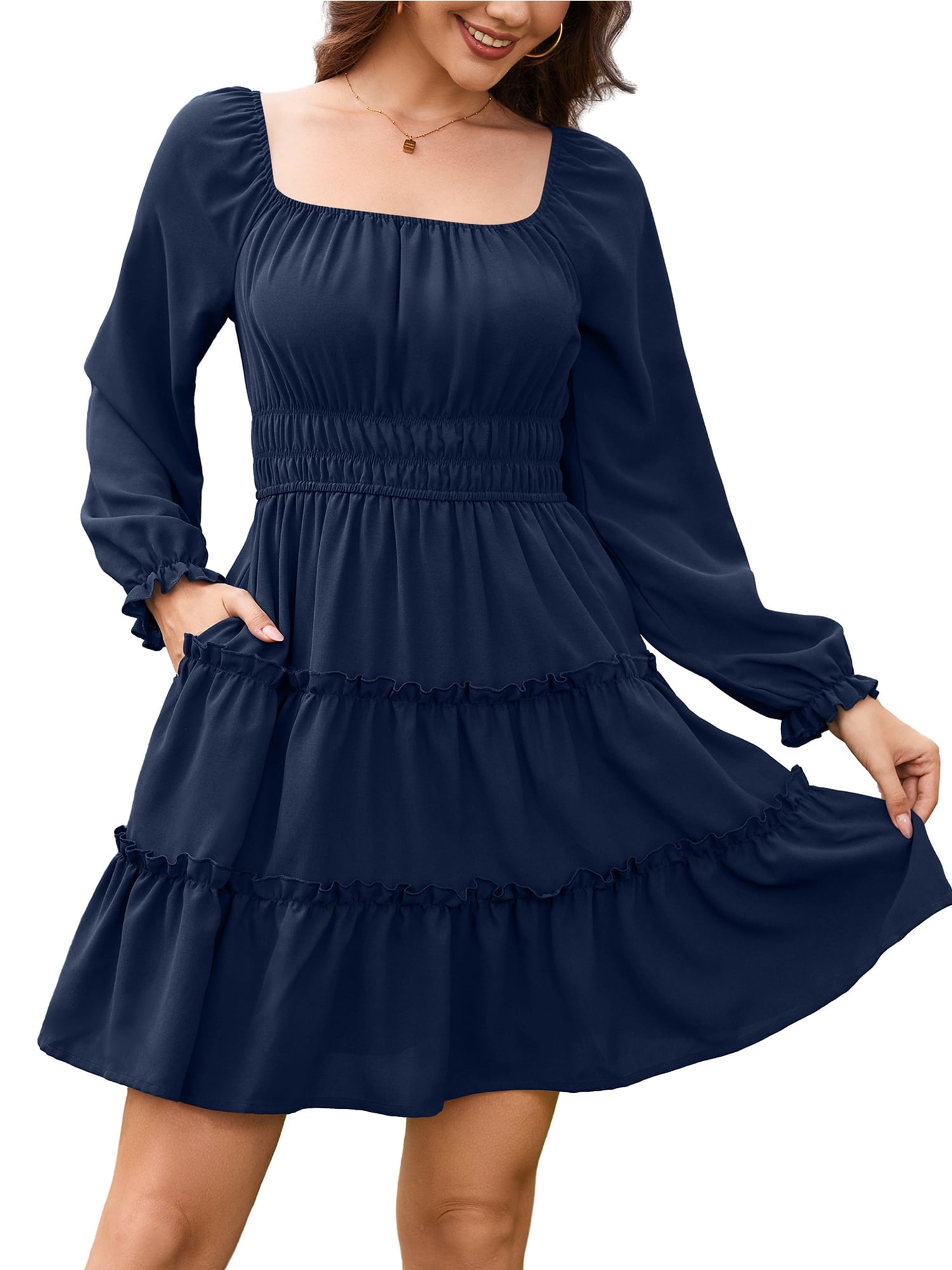 Nyla | Square Neck Smocked Dress