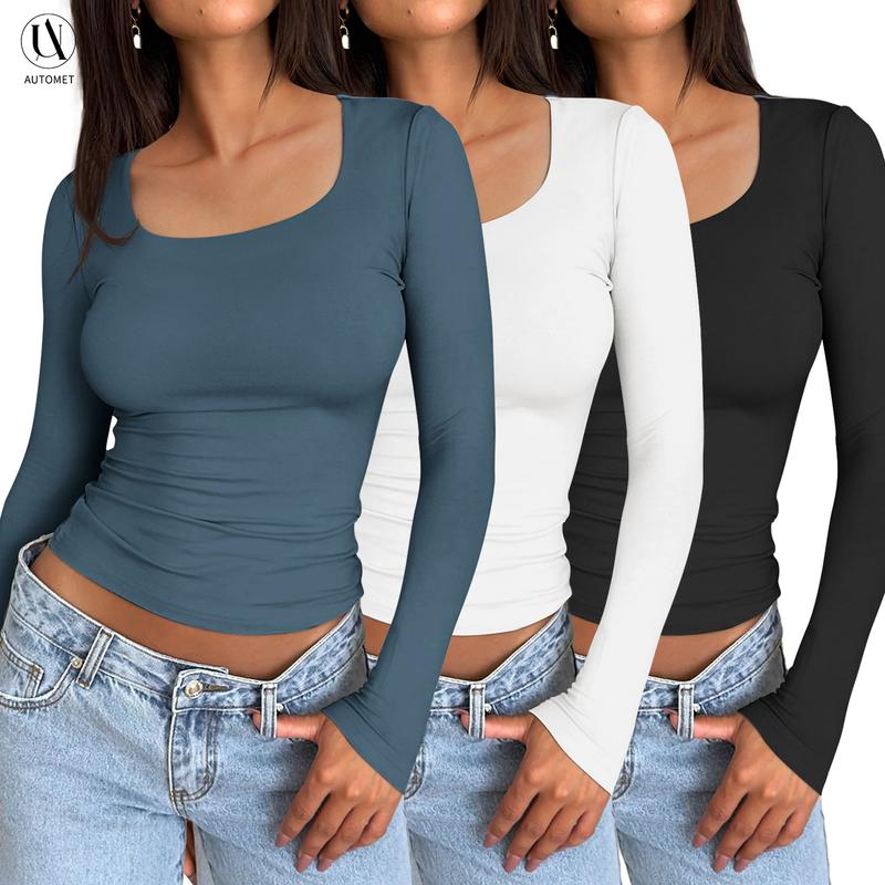 "Raya" 3-Pack Long Sleeve Square Neck Tops