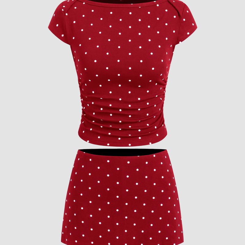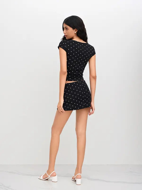 The “Phoebe” Polka Dot Crop Top & Mini Skirt Set