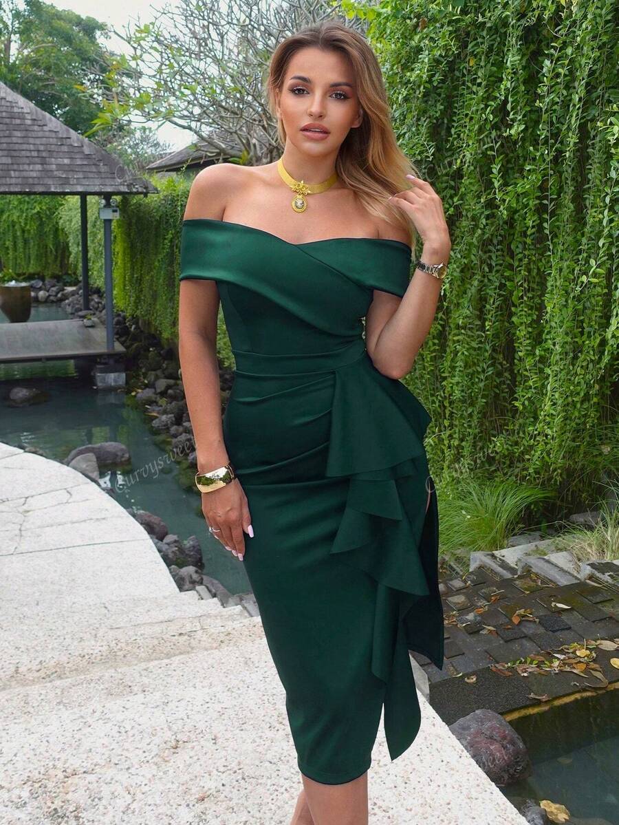 "Valentina" Off-Shoulder Peplum Bodycon Dress