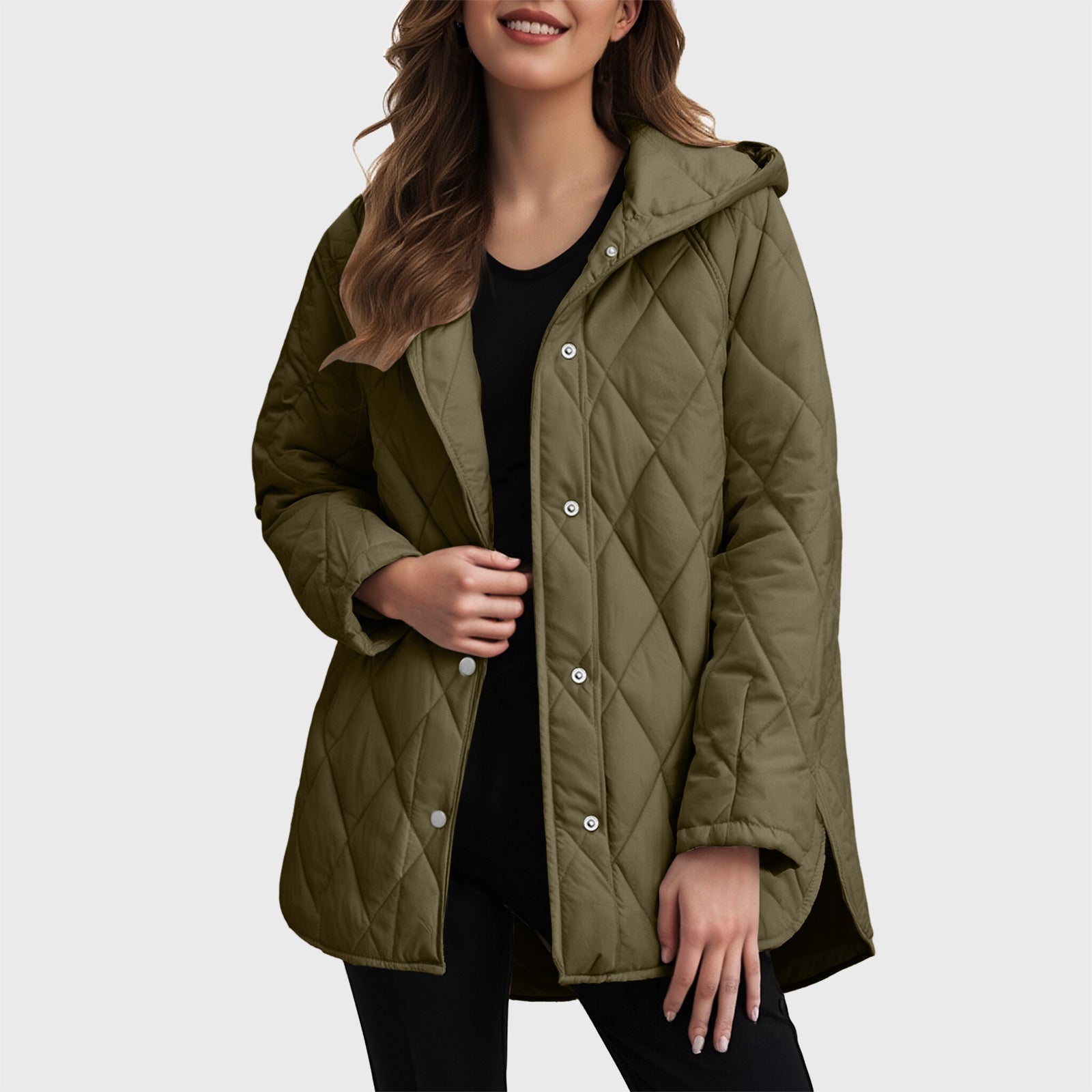 Sylvia casual coat with a solid colour check hood