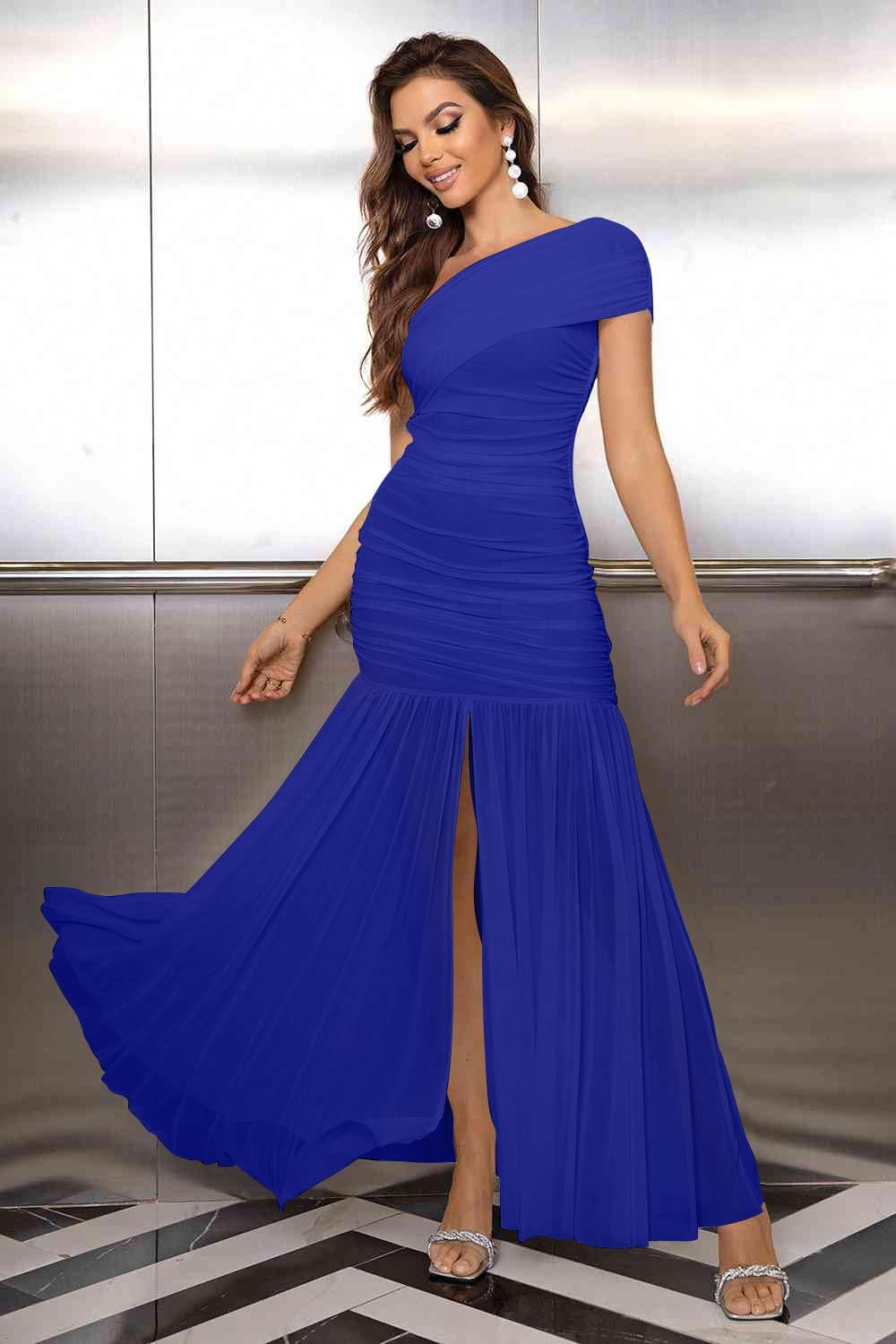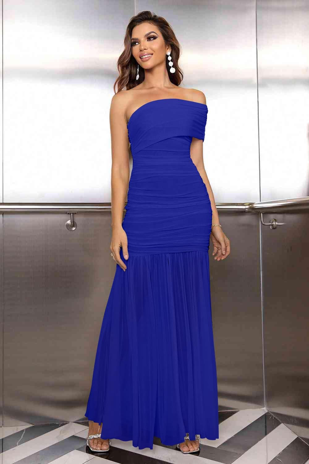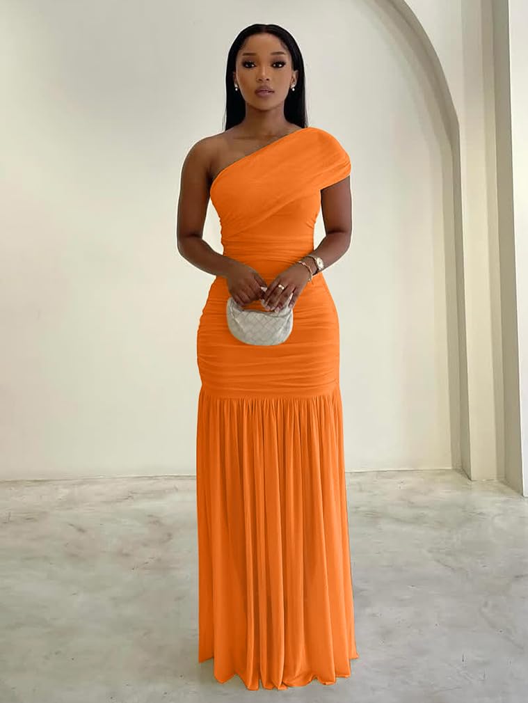 "Zyora" One-Shoulder Pleated Maxi Dress