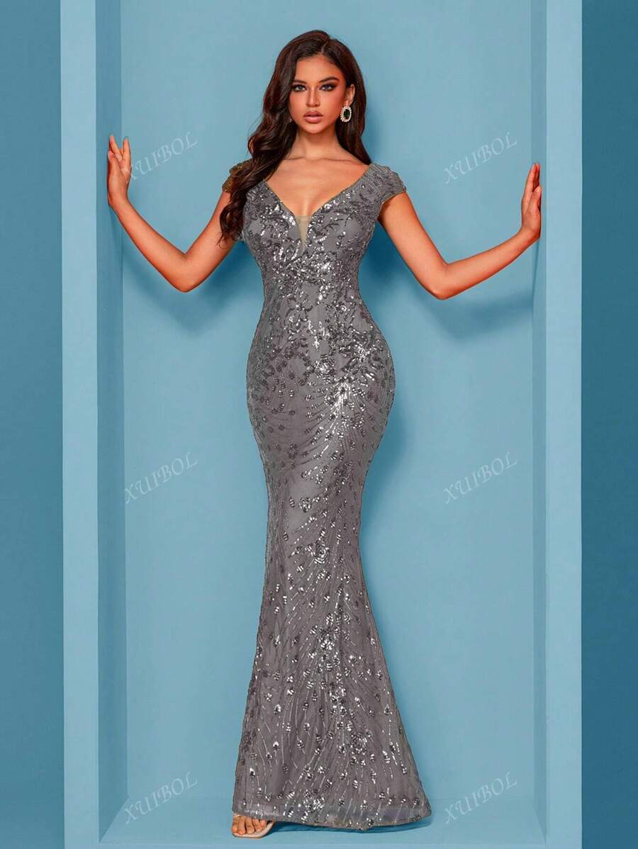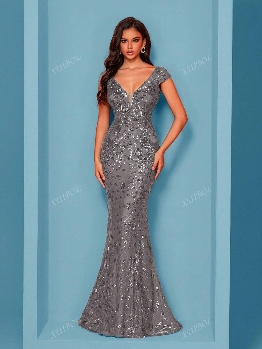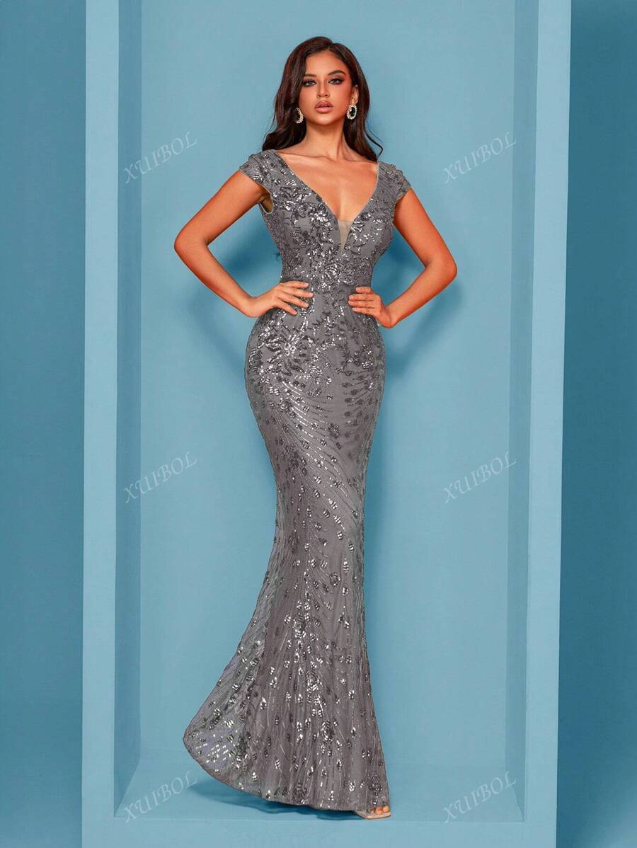 "Zyrelle" Beaded Lace Evening Gown