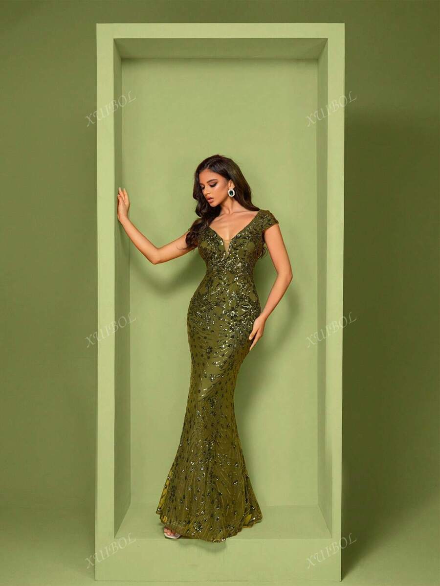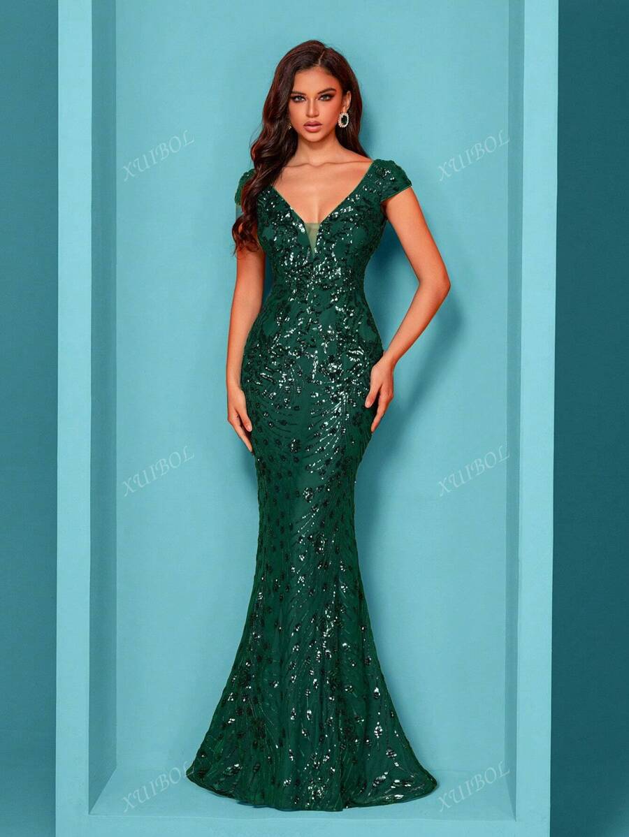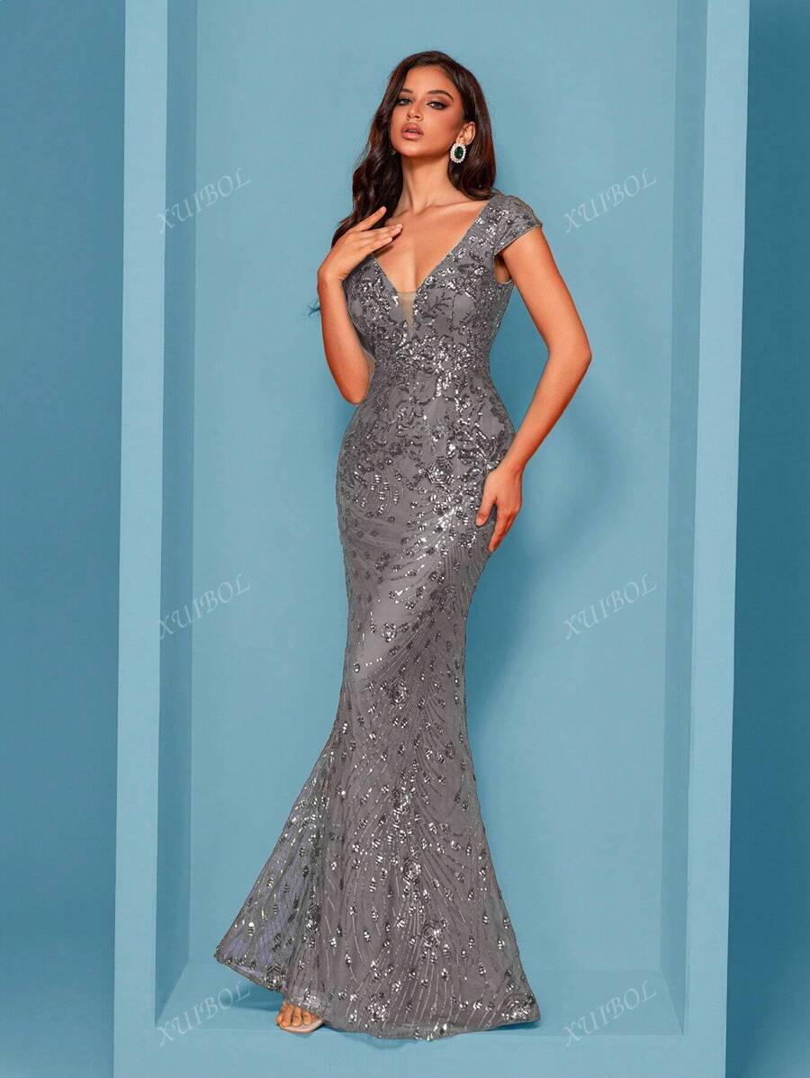 "Zyrelle" Beaded Lace Evening Gown